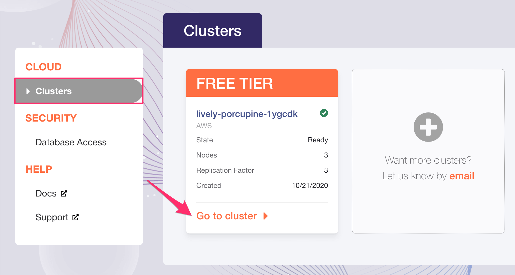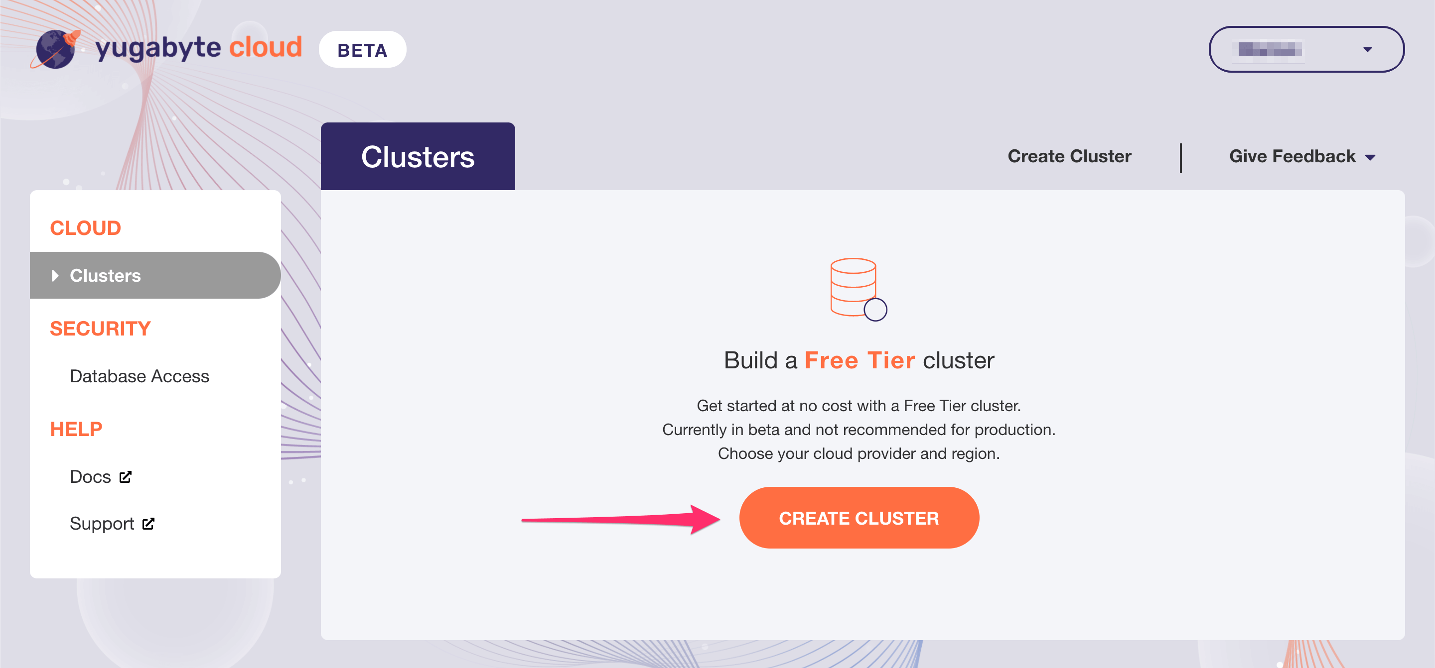 On the YugaByte Cloud dashboard, click on Create cluster: