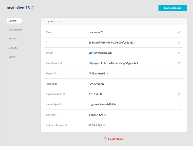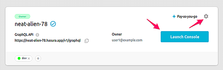 Launch Consoleto open the Hasura console in your browser. TheMonitoringtab lets you use the Pro features that Hasura Cloud has set up for you.