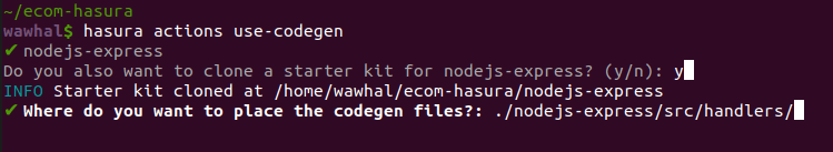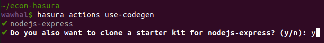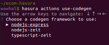 As of now, Hasura provides codegen for a few frameworks (nodejs-express, typescript-zeit, python-flask and many more). You can see the full list in the Codegen tab on the console after you’ve created an action.