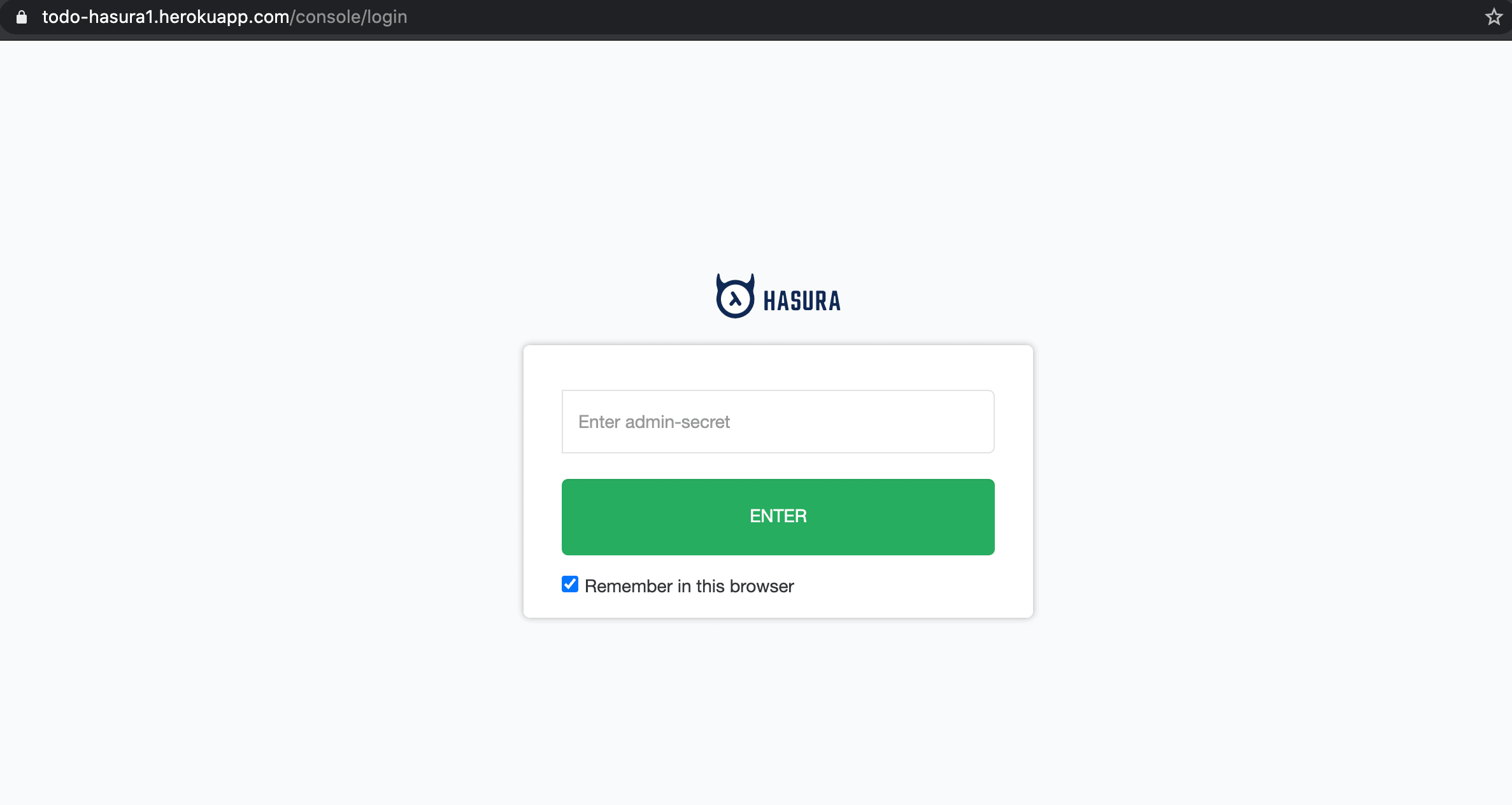 Setting this environment variable will automatically restart the dyno. Now when you access your console, you’ll be prompted for the admin secret key.