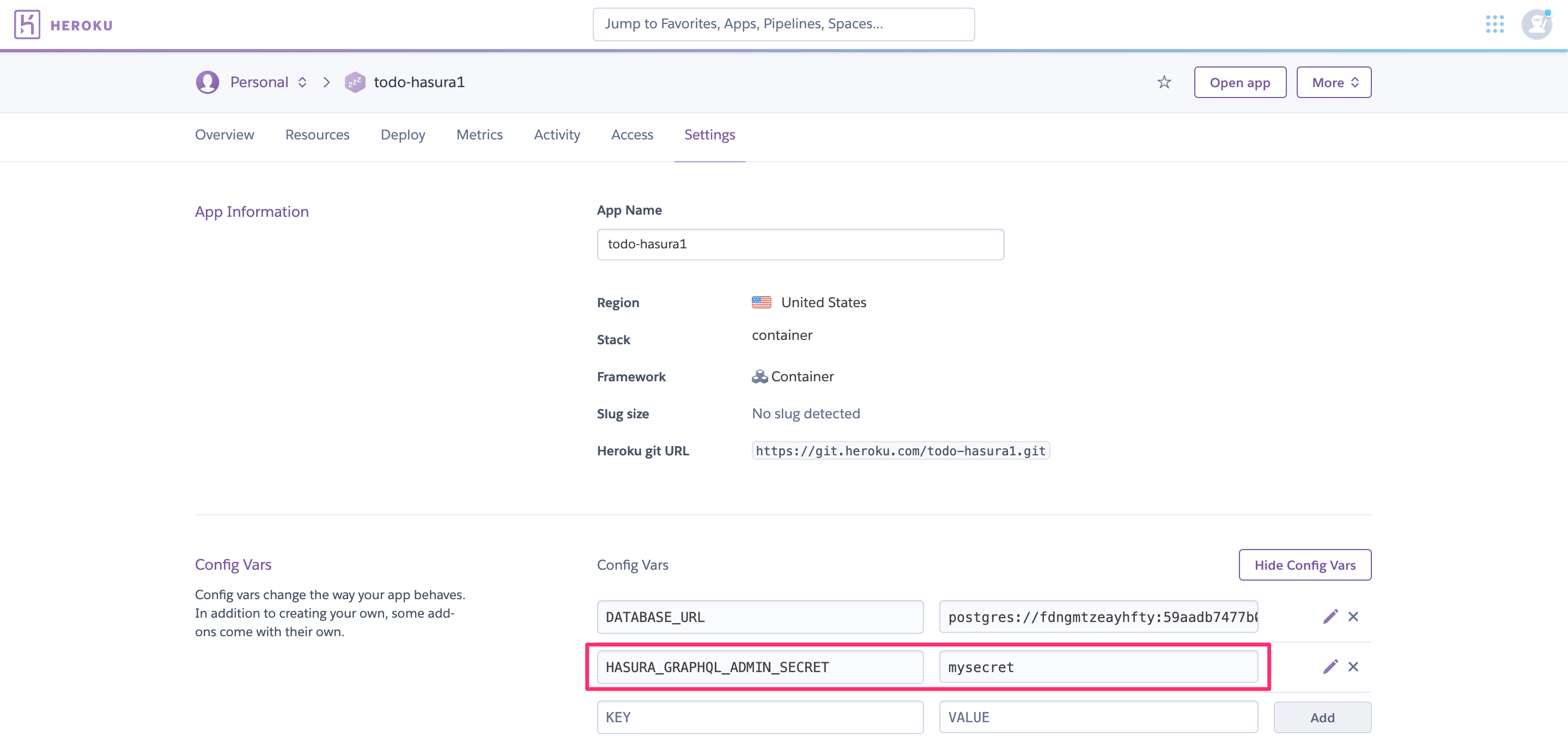 HEROKU_GIT_REMOTE: https://git.heroku.com/todo-hasura1.gitHEROKU_APP_URL: https://todo-hasura1.herokuapp.com/